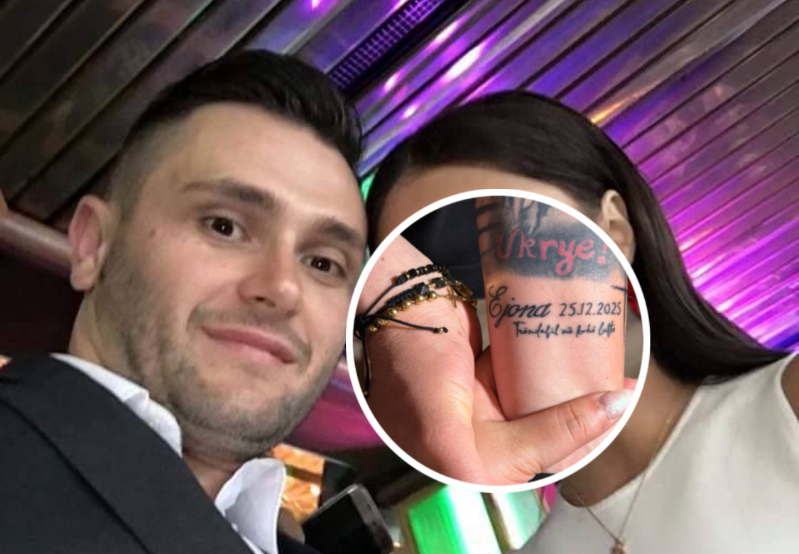 “Ejona 25.12.2025 – Trëndafil në kohë lufte”, shkruhet në tatuazhin e aktorit.