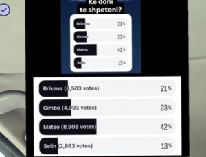 Por çfarë mendon publiku jashtë dhe kush është më i rrezikuari? Një tregues mjaft të qartë e ka dhënë aktori dhe ish-banori i BBVA, Jul Deda. Ai ka hapur një sondazh në llogarinë e tij, ku kanë votuar mbi 21 mijë ndjekës, dhe rezultatet tregojnë një diferencë të madhe mes banorëve.