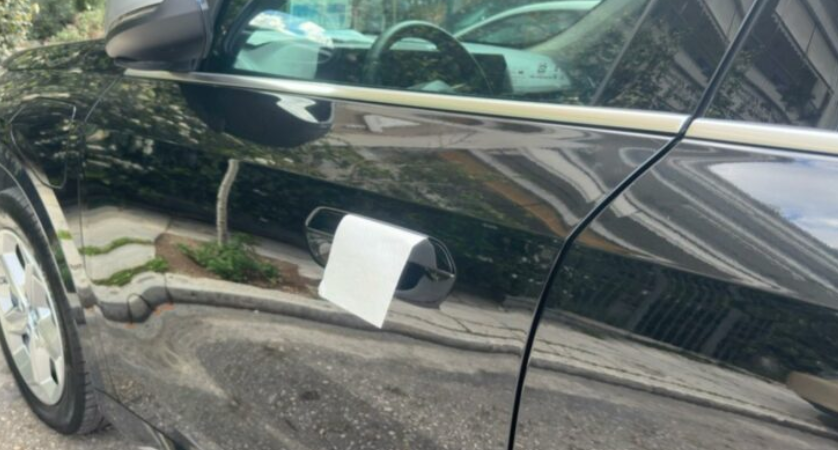 Një pecetë e vendosur në dorezën e derës së makinës suaj mund të jetë një sinjal se automjeti është vënë në shënjestër për vjedhje, prandaj këshillohet të kontaktoni menjëherë autoritetet.